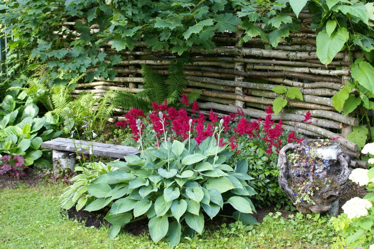 Хосты астильба папоротник клумба