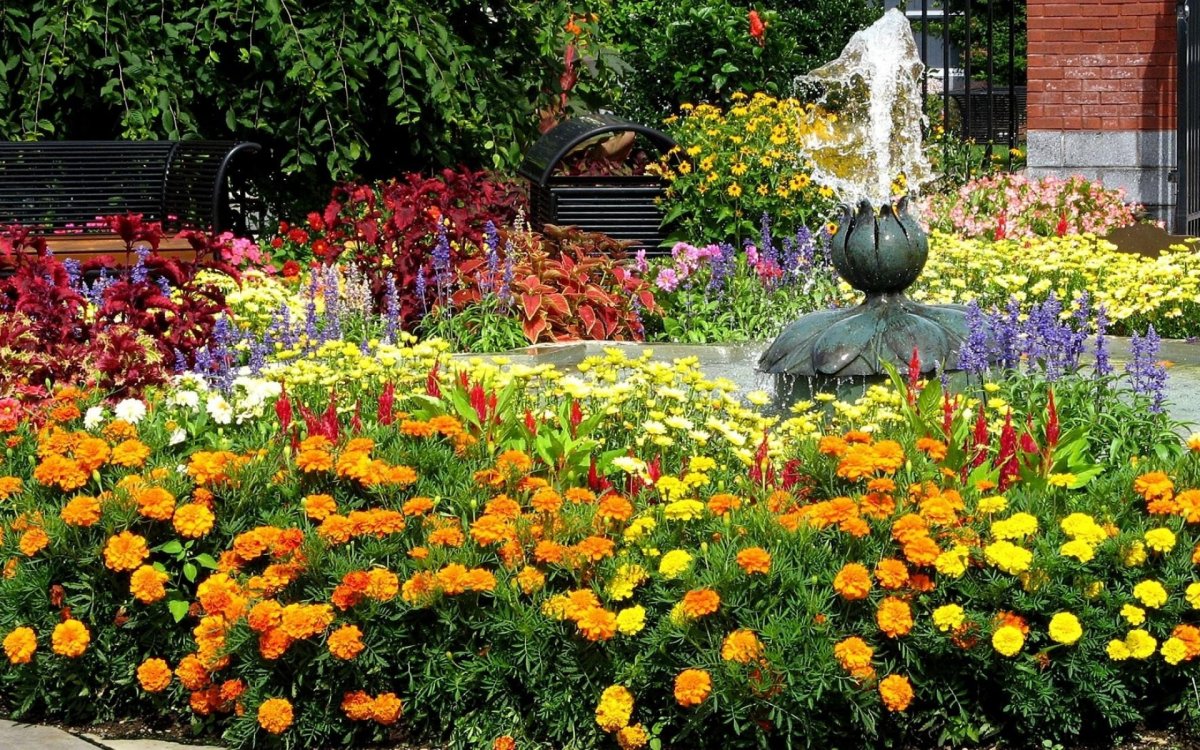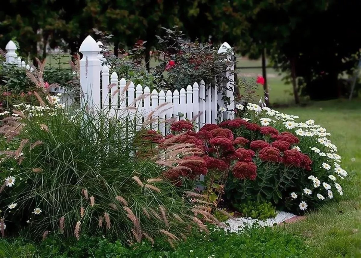 Клумба Мальва дельфиниум Хоста Флоксы рудбекия