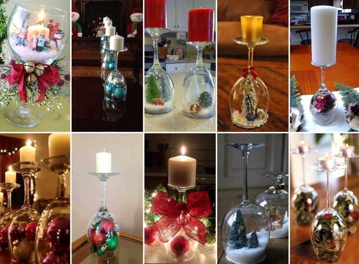Новогодние подсвечники из бокалов