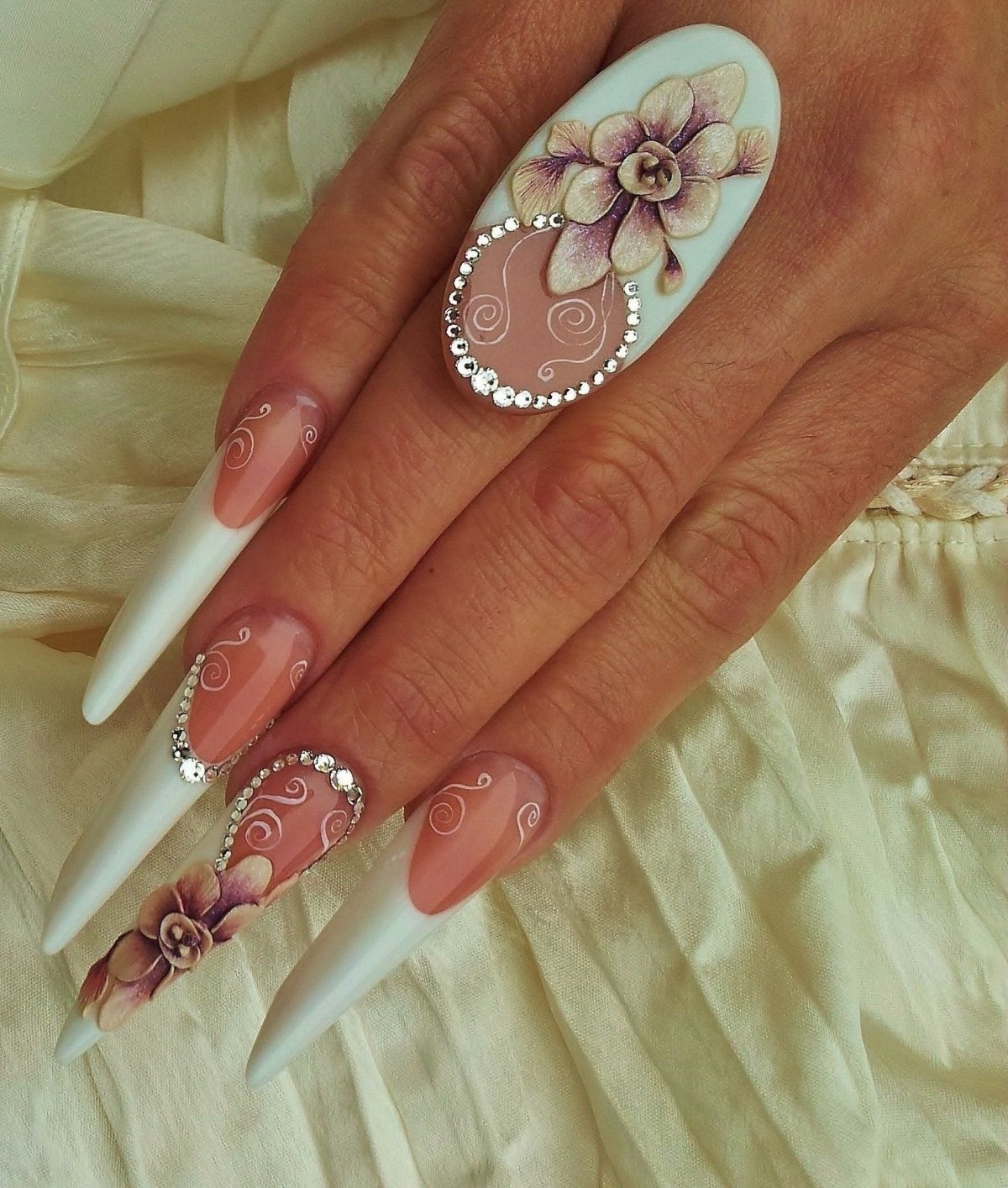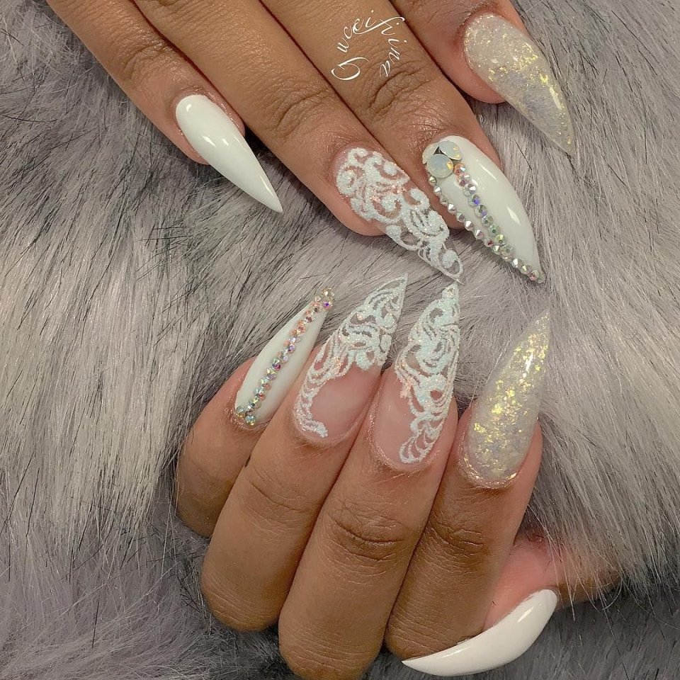 Свадебный маникюр на длинные острые ногти