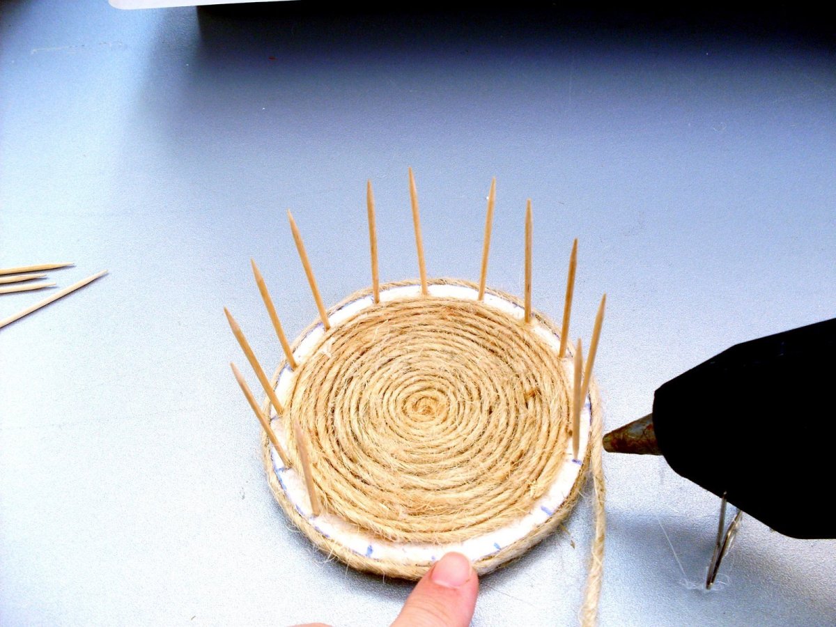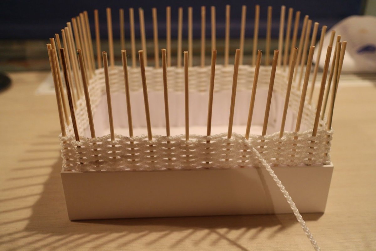 Корзинка из пряжи и зубочисток