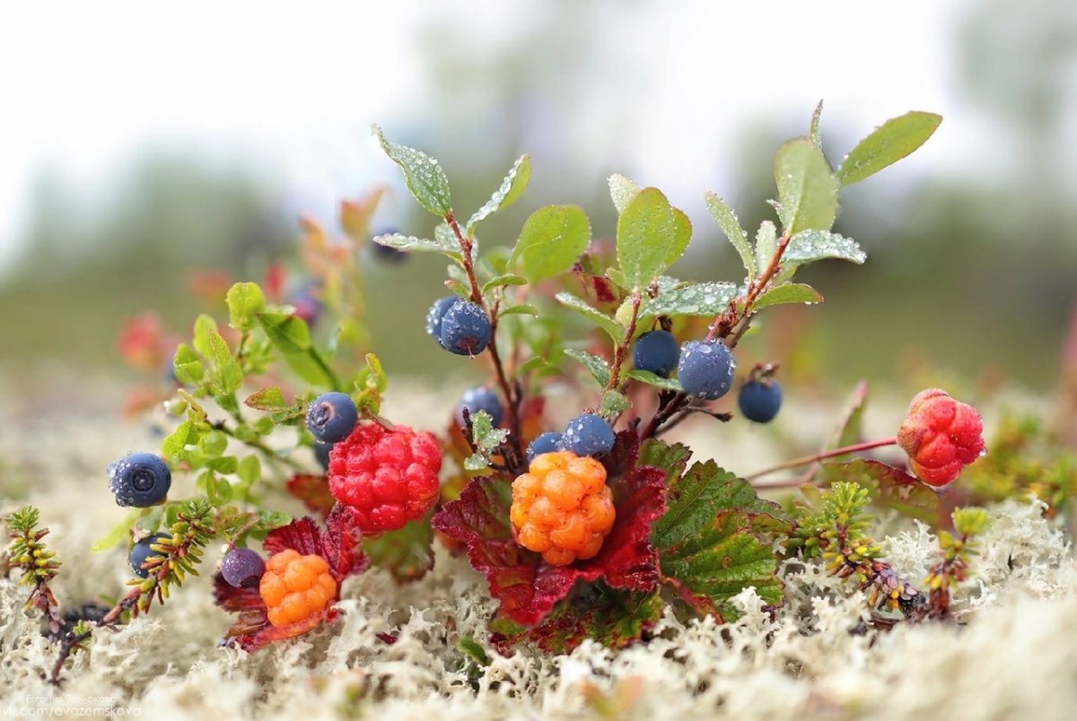 Интересные фото: Черная круглая ягода на дереве и Колючий куст с синими ягодами